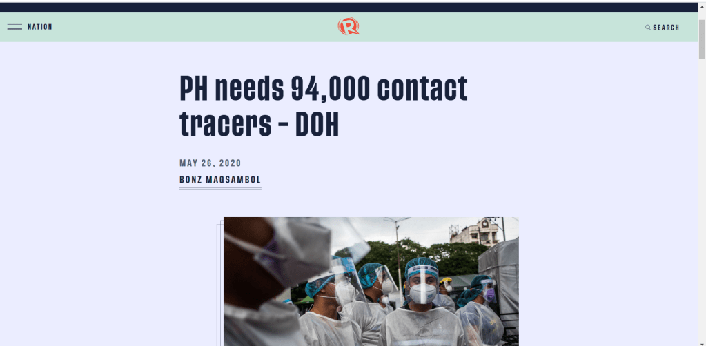 According to the Department of Health, the Philippines is in need of about 94,000 contact tracers.